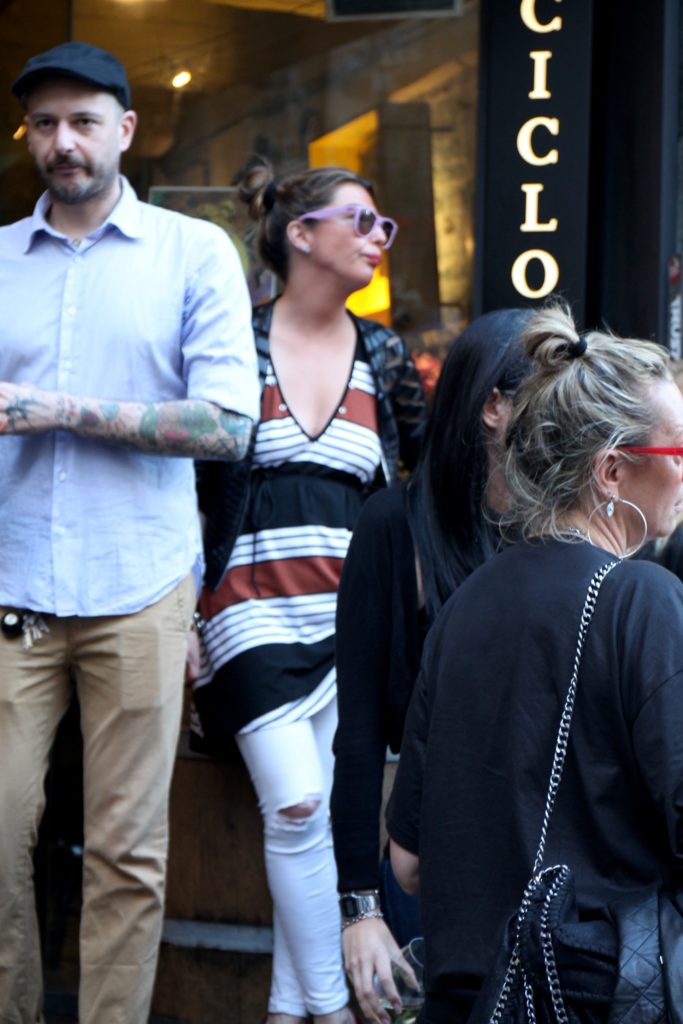 At the entrance of a club, dressing for a night out is casual and alternative.
