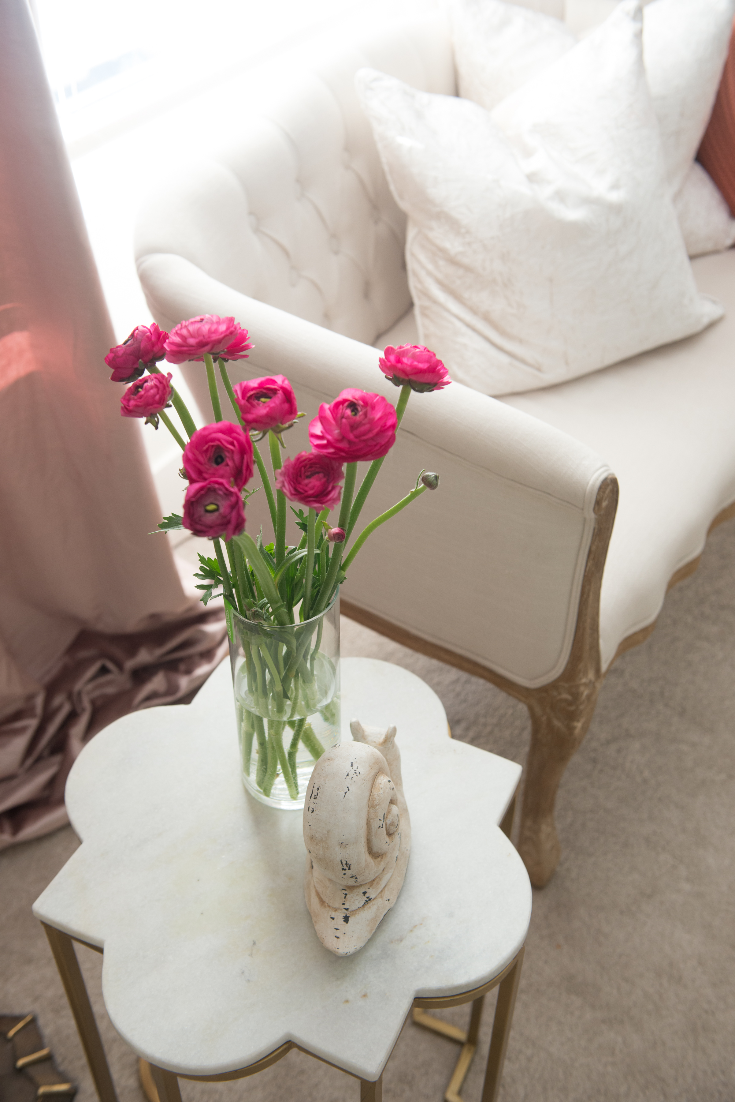 Pretty and pink is not just for a girl’s room with ballerina bedding and shag rugs, it is also very grown up. The palette compliments the sophisticated, warm style where the right details support the designer’s mission. Pillows, novelty boxes and accents don’t have that peel-off-the-price-tag newness. The rooms show a thoughtful gathering of appointed pieces that balance design and functionality with a gentle spin.