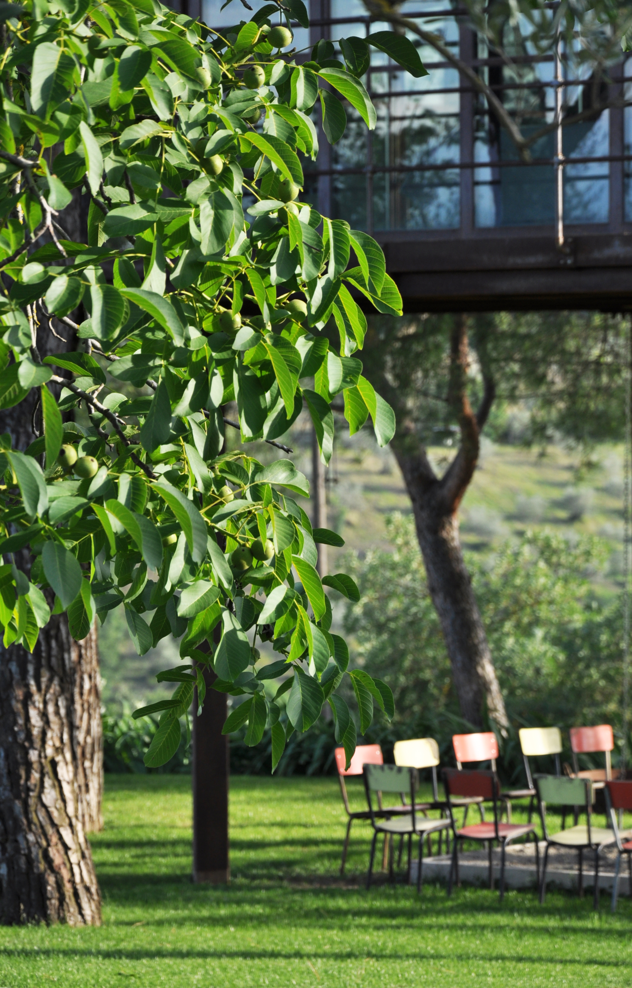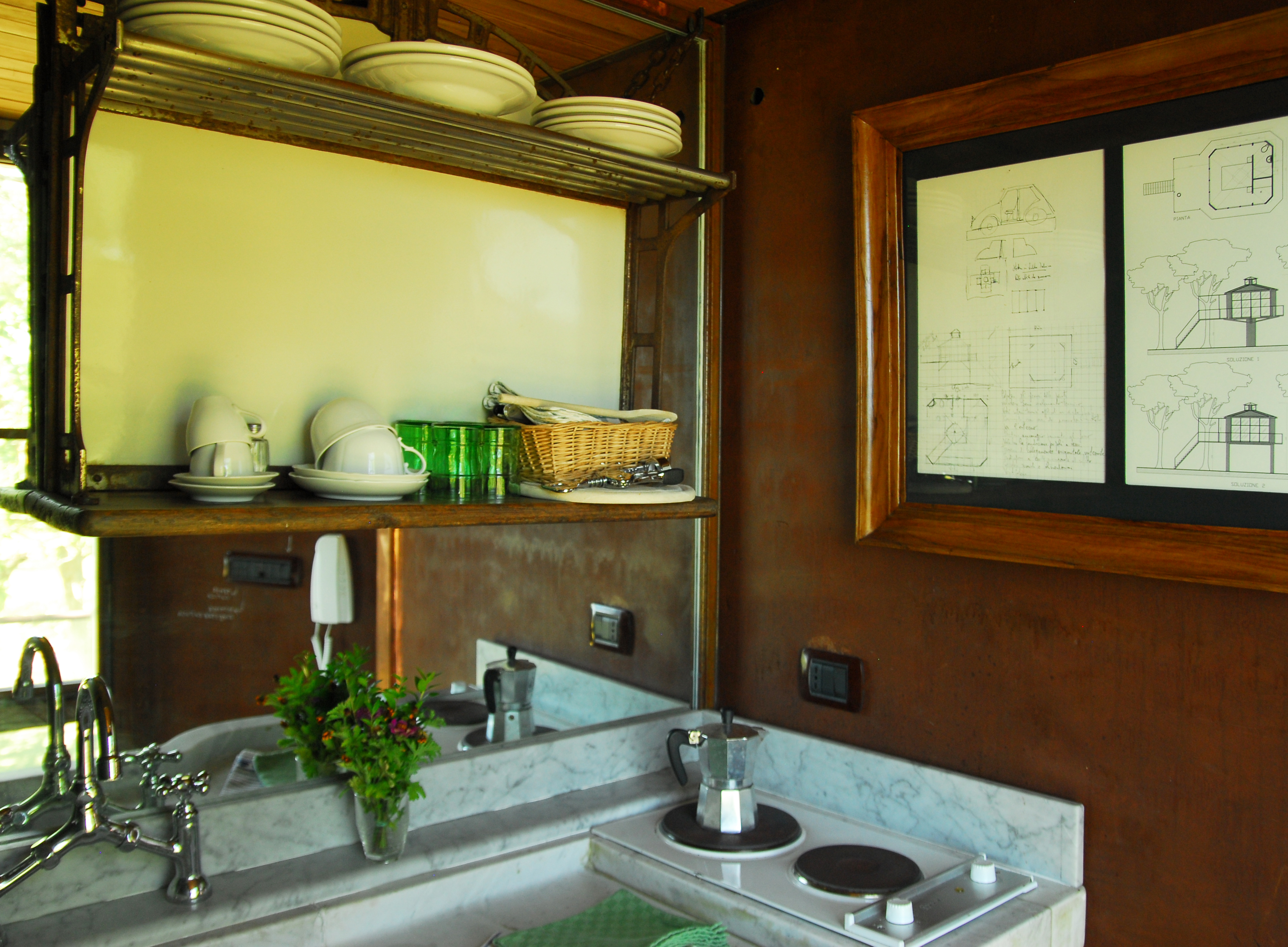 Casa Bartel overlooks orchards, olive groves, the Tuscan landscape, pool, tennis court and a sole cypress tree. The terrace is spacious enough for dining, which you will share with the tree’s neighboring tenants of birds and the occasional squirrel. Inside and you will quickly forget that you climbed a narrow staircase up a tree to discover a room with a fireplace, bathroom and full-service kitchenette. The chalkboard wall behind the bed displays an artistic rotation of drawings and notes from past guests. The decor rivals most New York City apartments.