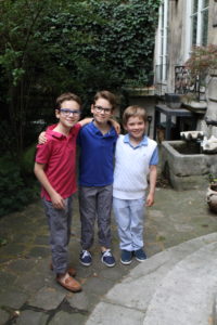 Forget dietary constraints of finicky guests or meals delivered in aluminum trays, there was a selection of foods that encouraged sampling. The variety of small plats relates to the early June season with prosciutto, trays of cheese, cold ham, breads, tapenade and large bowls of cherries, apricots and potato chips–a favorite with the younger guests. A tray of gazpacho and pureed pea served in orange juice glasses was well received. Champagne was the main drink of the evening.