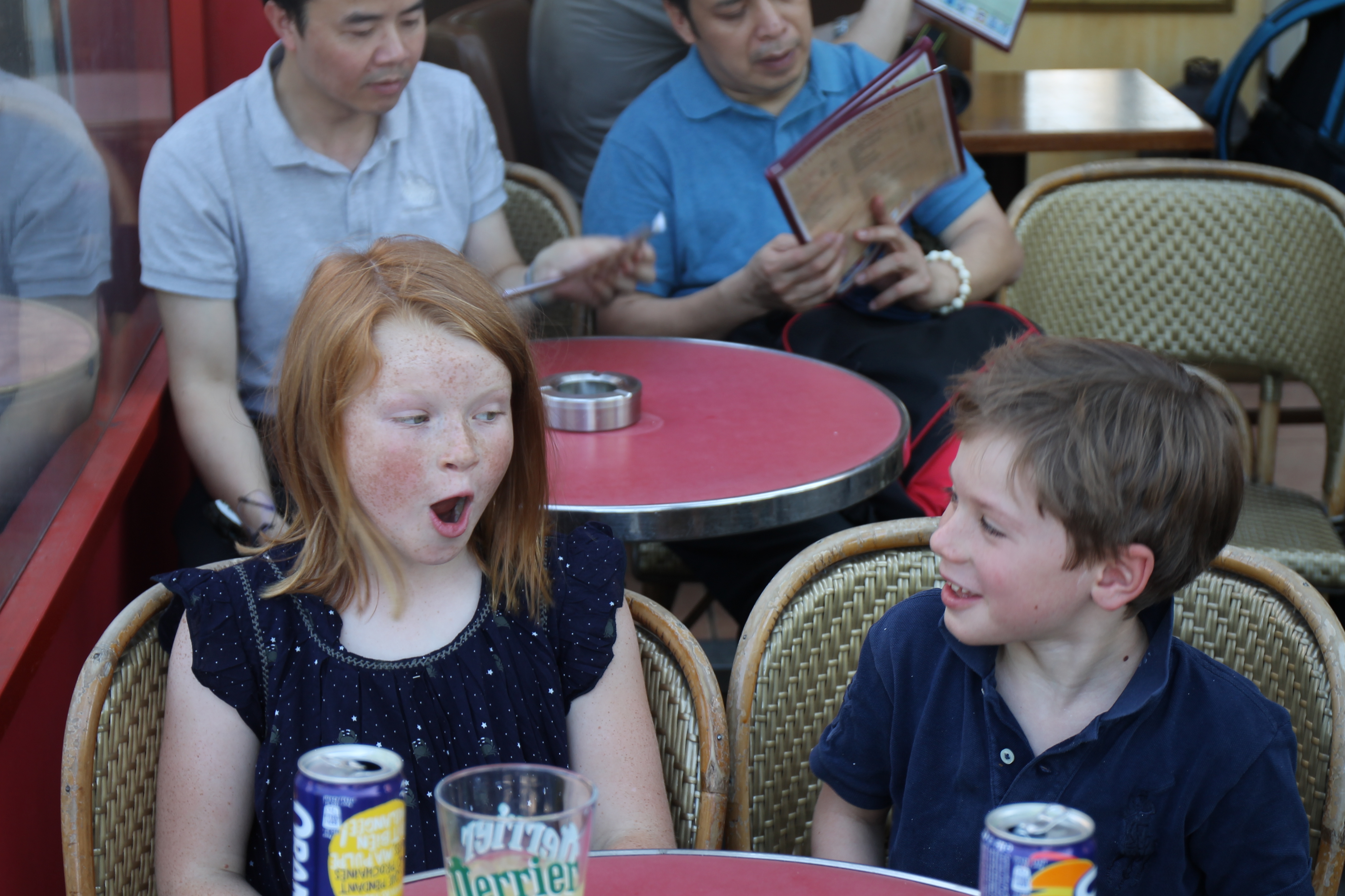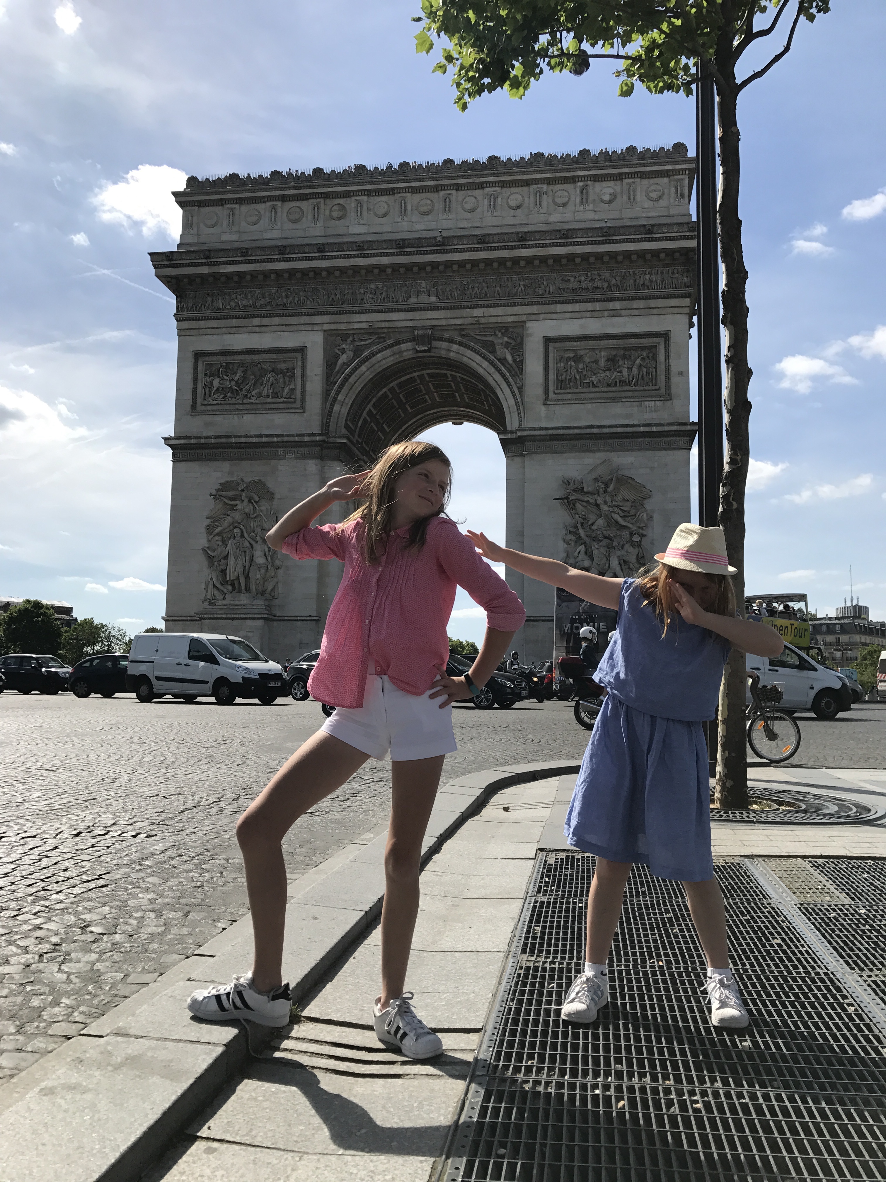 We had lunch at a cafe, where our two youngest diners found their hamburger sliders to be inedible due to a smearing of hollandaise sauce. Their order was returned to the waiter, then given back to our table with an explanation that there was no hollandaise sauce. (The grownups sampled, it tasted of hollandaise sauce, which is a subtle reminder that we are not in America and to ask about any added sauces). The day ended at the Arc de Triomphe with the kids making trendy poses that apparently signify something.