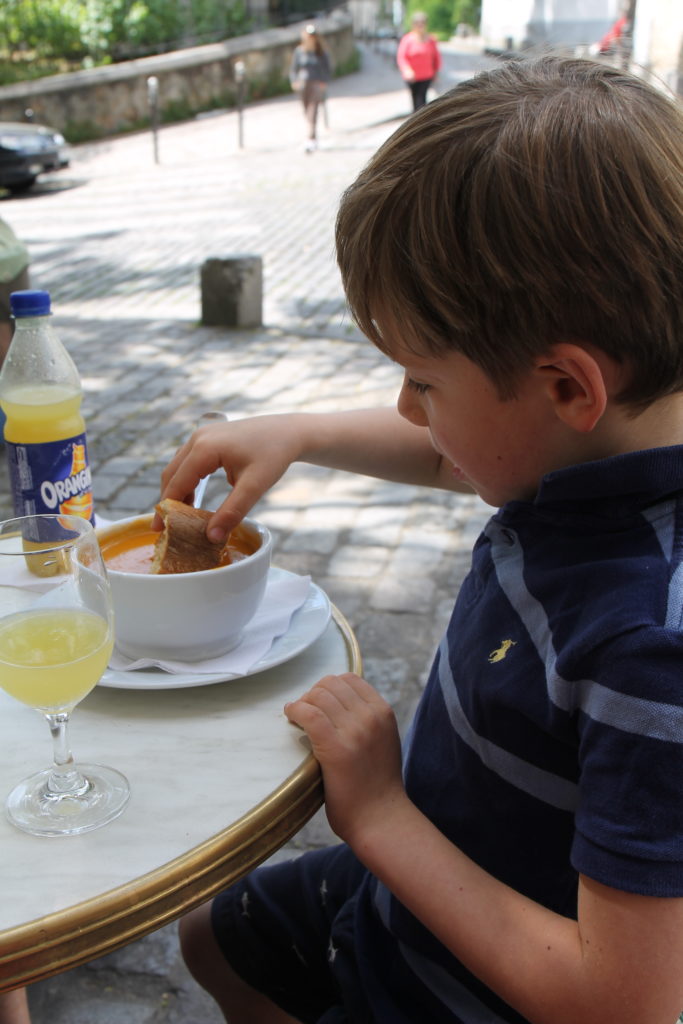 This was the morning when Luc discovered a wiggly tooth and that the French do not have a tooth fairy but La Petit Sourie (the little mouse). He rationalizes that it is natural for a food obsessed city to have a mouse collect baby teeth the way they would delicious crumbs.