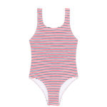 Stripes have dimension, varying in color combinations and scale, which nudges an expected look into something unique.
