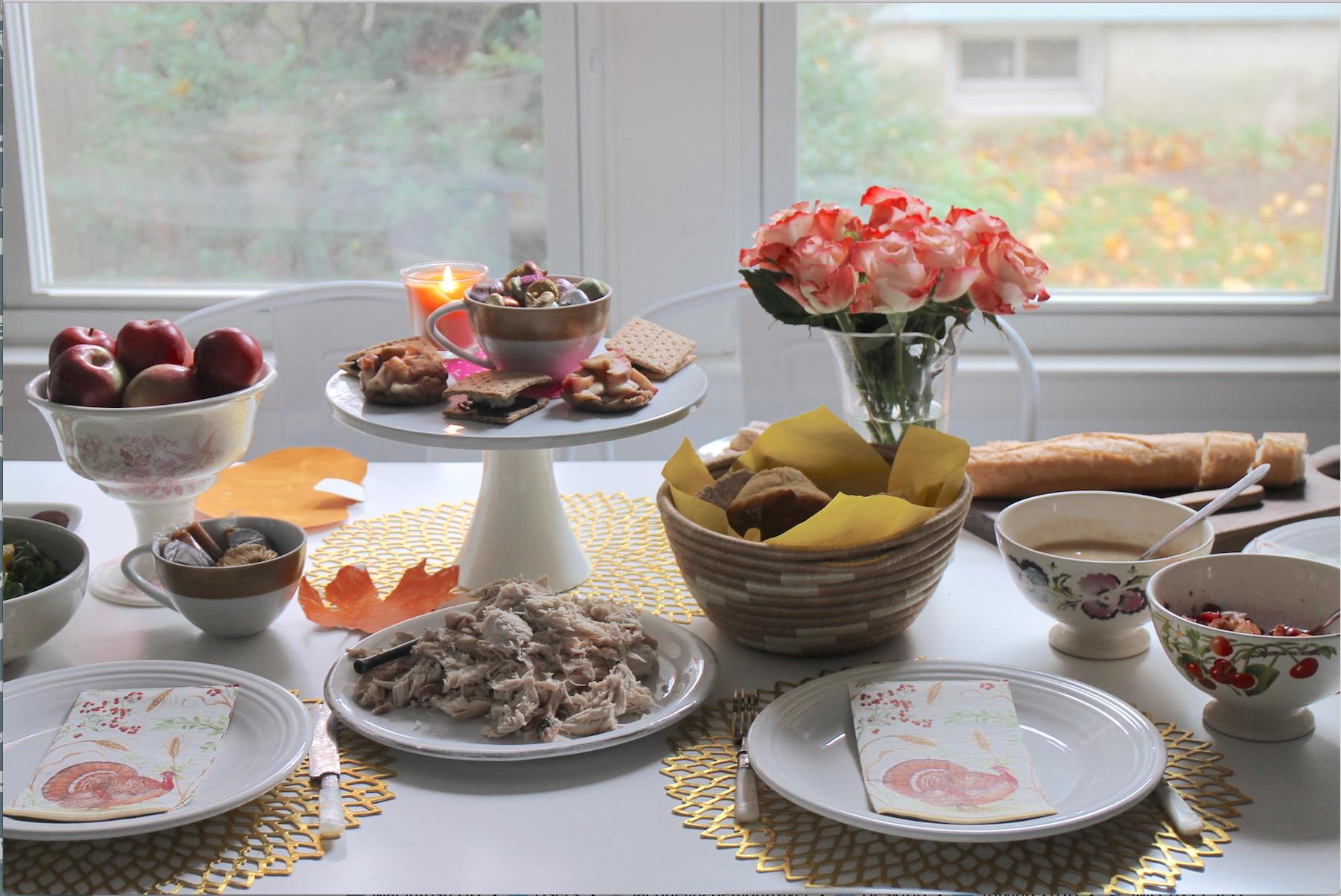 Using everyday tableware meant one less task from not having to excavate the good china, which is spruced with accents for a more personalized, laid back gathering.