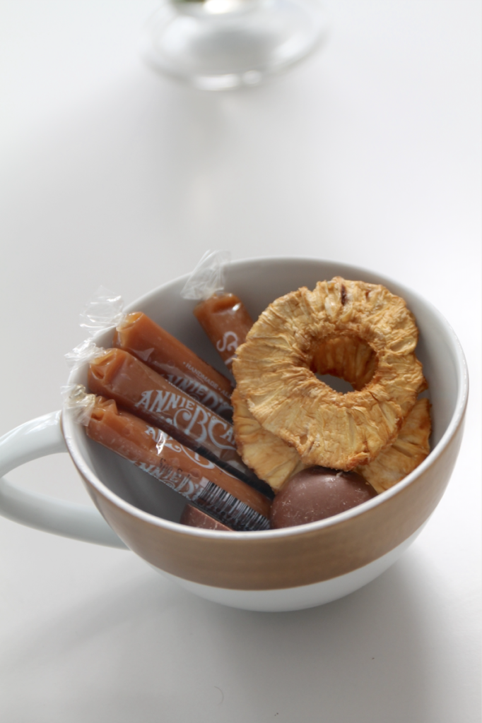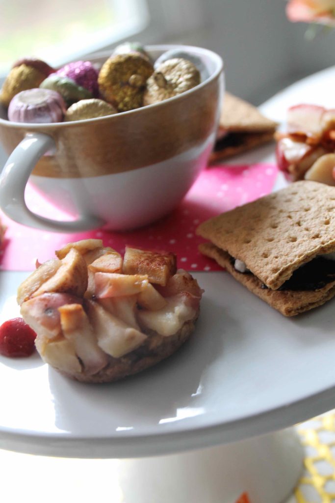2. Consider scale in your tablescape. Cake plates elevate the style of desserts, a pedestal bowl of apples and teacups of dried fruit and candies are both decorative and offer the guests varied options to entice the senses.