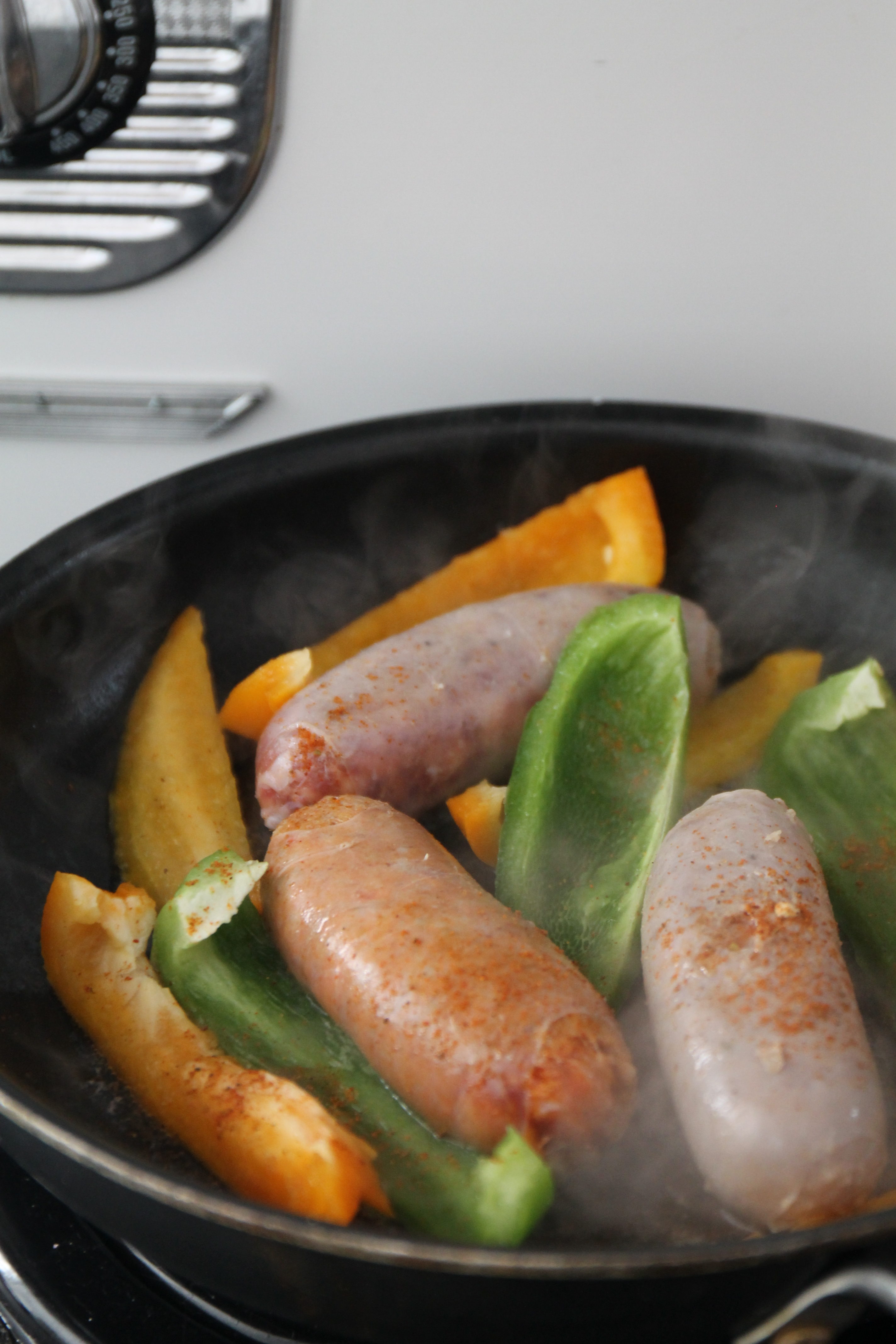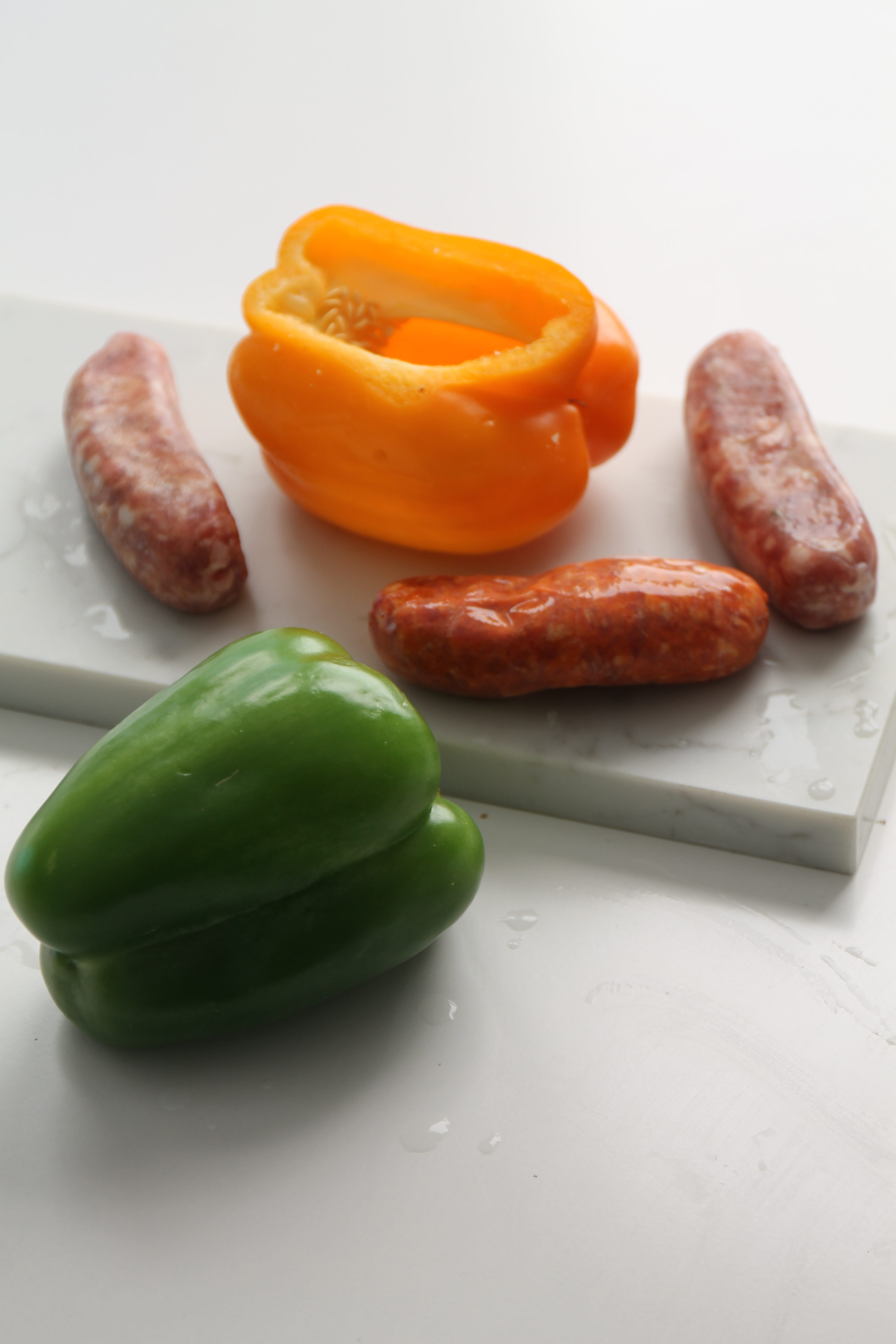 There is a reason why corned beef and cabbage is only popular on Saint Patrick’s day, food resembling plastic menu items so popular in Chinese storefront windows is wearisome. Since we have a knack for tweaking traditions so they are more you-based than conventional, serve sausages and peppers, a meal that is simple to prepare, a universal favorite, and celebrates the holiday from its festive insertion of Irish orange and green (orange and green peppers to be specific).