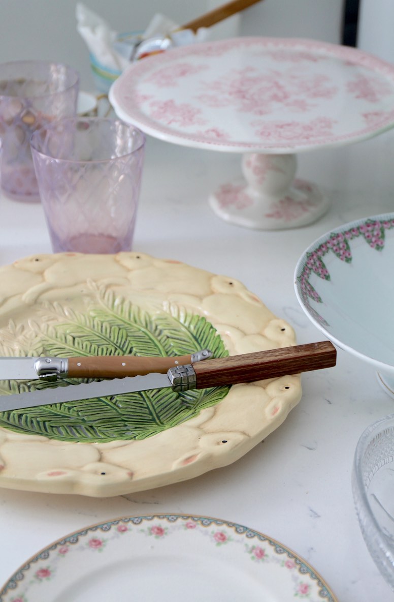 You don’t need a rambling title for a Downton-esque table. Show your manor house flair by setting pieces with pedigree, such as cabbage rose printed dishes and burleigh ceramics, then inject with styled touches flike glassware in pink and colorful ceramics.