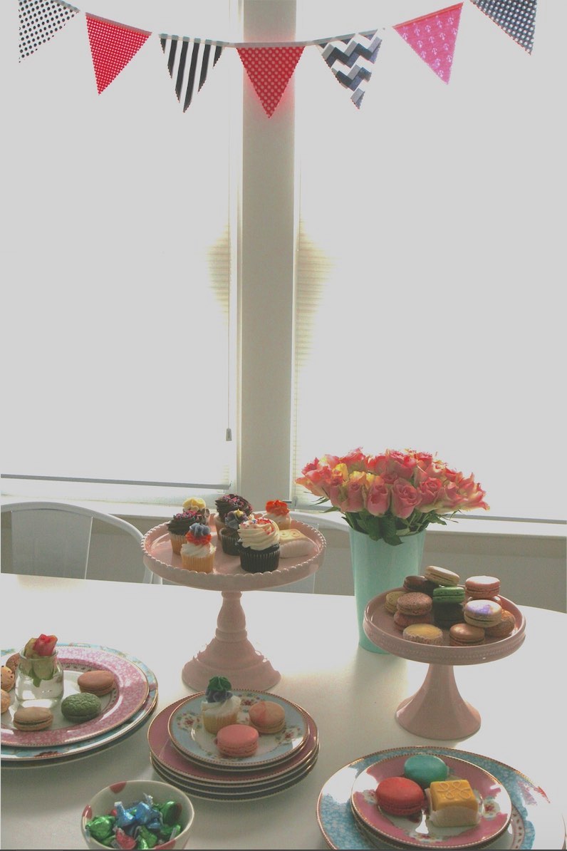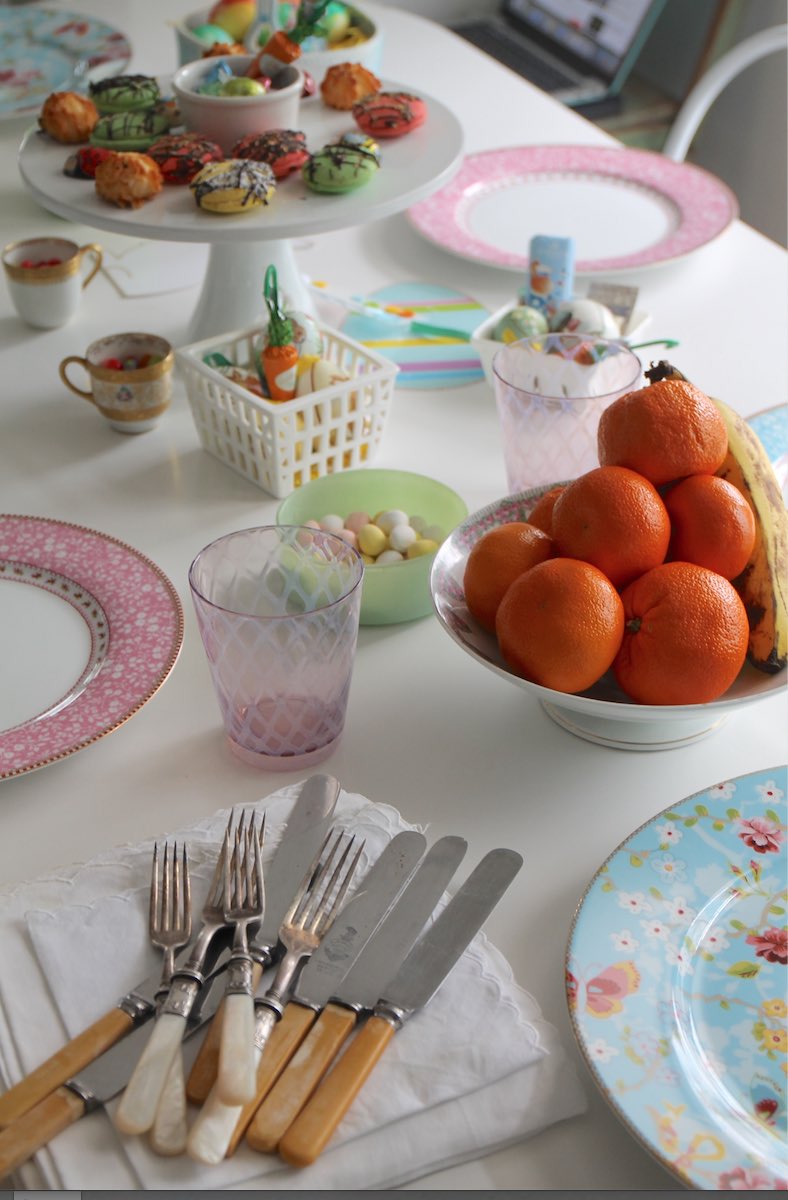 Serve a variety of items on different dishes. Be cognizant of a palette that brightens the atmosphere. Use textiles for texture, such as runners, table cloths, placemats and a bunting strewn across for a bold injection of color and pattern.
